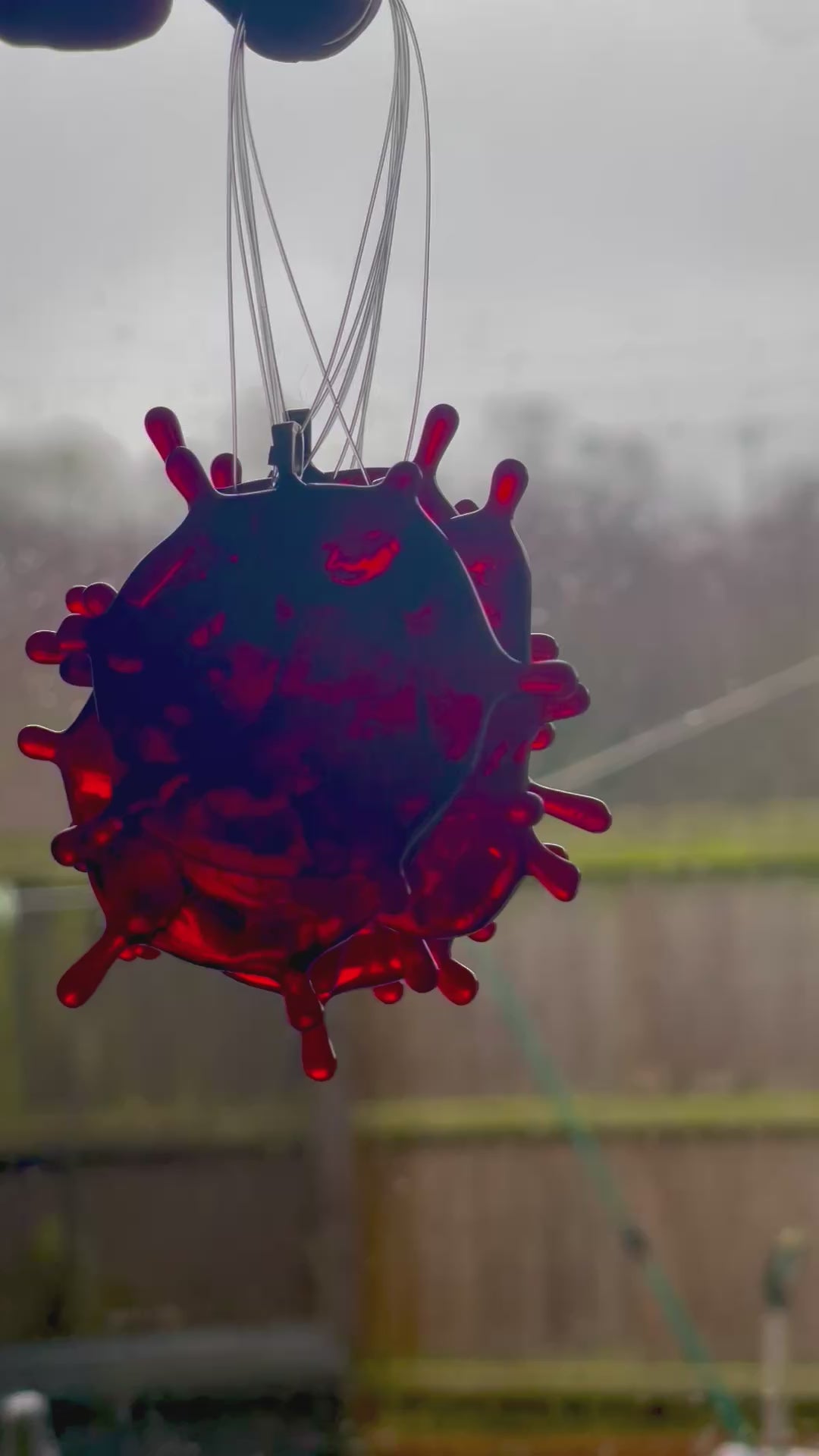 These are cut from a sheet of glass and fired in a kiln to make their unique shape and resin is added to the back in droplets to make them look more bloody.